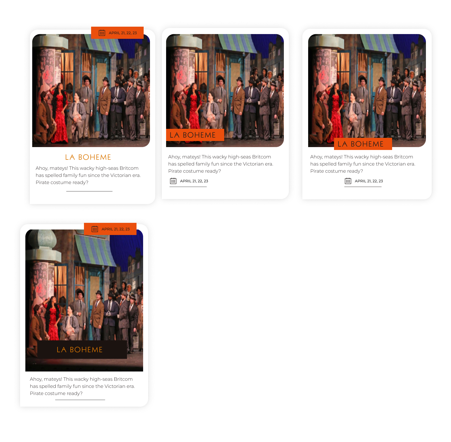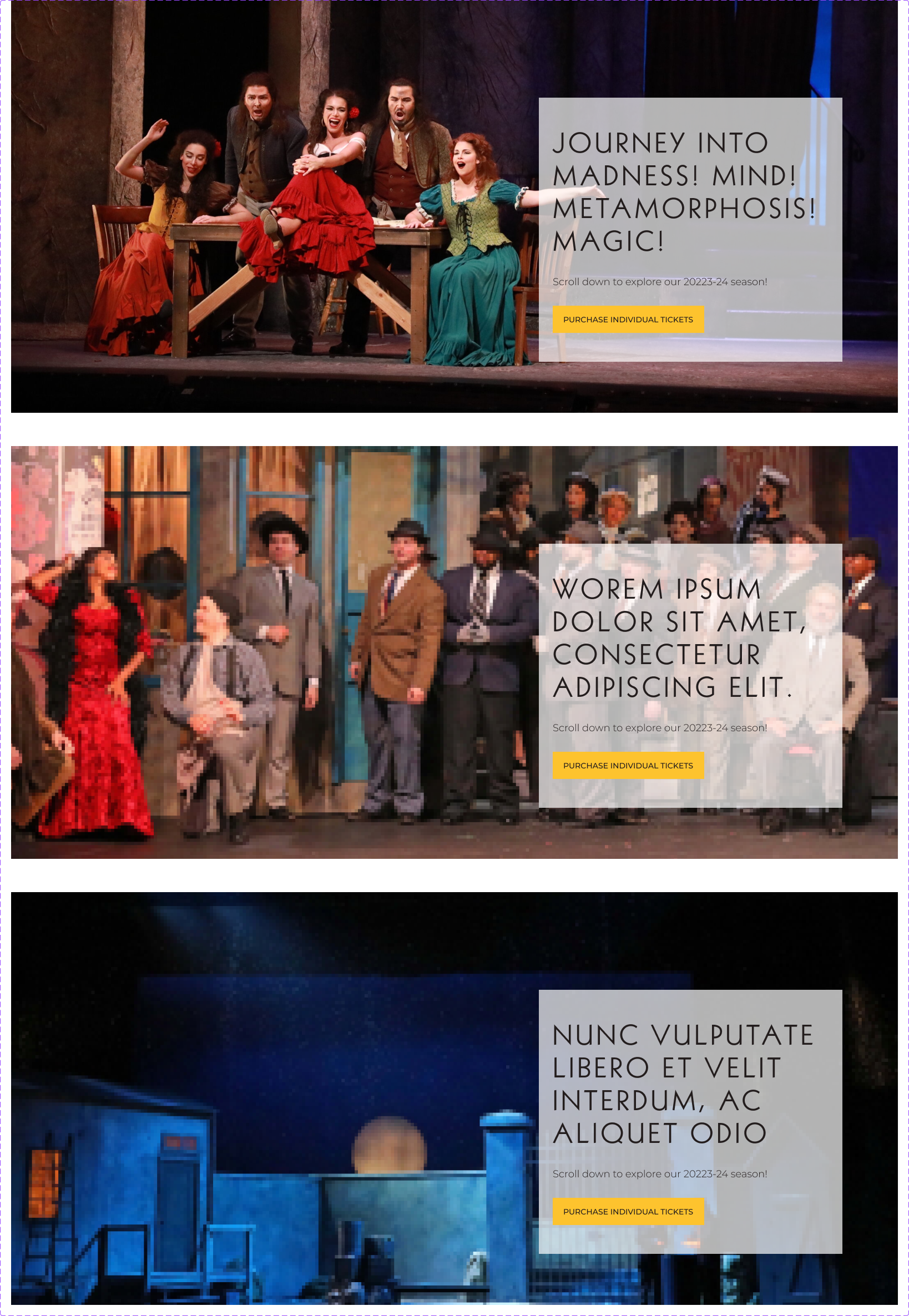 The main image is set up as a carousel. Attached are variations of images that can be inserted. Nashville Opera will be able to create and insert their own images. Image dimensions will be provided.